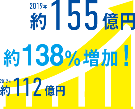 当社は創業からソフトバンクとともに歩んできました。着実に成長を継続し、現在では550社中10社のみ認定される優良オーナーとして大きな信頼をいただいております。それに伴い、売上も2012年から7年で約138%増加するまでに成長してきました。