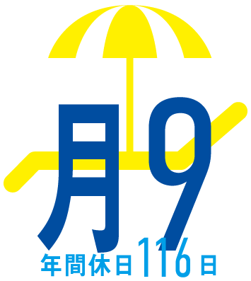 月9日間の公休と、8日間のリフレッシュ休日と合わせて、年間休日は116日!